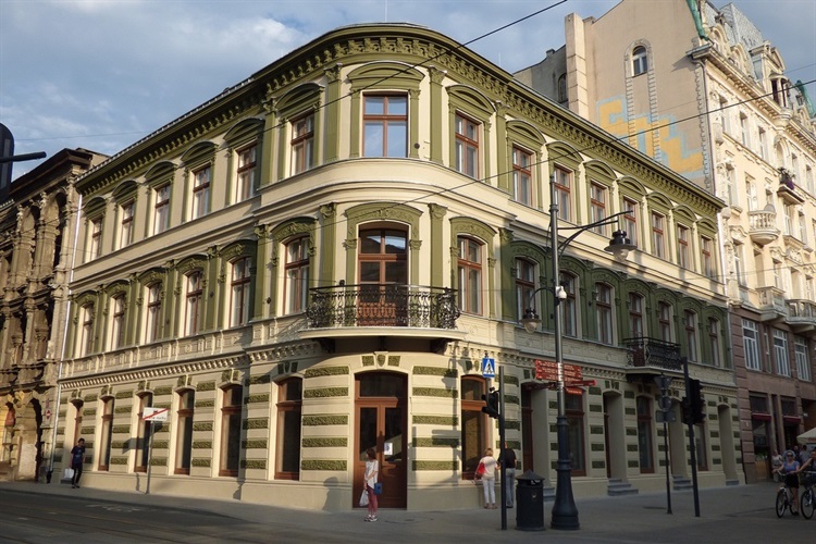 Franciszek Fischer był właścicielem działki gruntowej u zbiegu ulic Piotrkowskiej i Narutowicza, dawniej Dzielnej. Na tym terenie w roku 1876 wzniósł swój pierwszy dom (Piotrkowska 54), którego projektantem był architekt Hilary Majewski. Kamienica ta przyciąga wzrok przechodniów ze względu na charakterystycznie zaokrągloną elewację. Fischer w latach 1889-1890 na tej samej działce wybudował swój kolejny dom, "doklejając" go do poprzedniego budynku. "Nowa" kamienica (Narutowicza 1) jest dwupiętrowa o cechach neorenesansowych, bardziej bogata w dekoracje elewacyjne niż pierwsza z ulicy Piotrkowskiej 54. Jej architektem był Edward Kreutzburg.