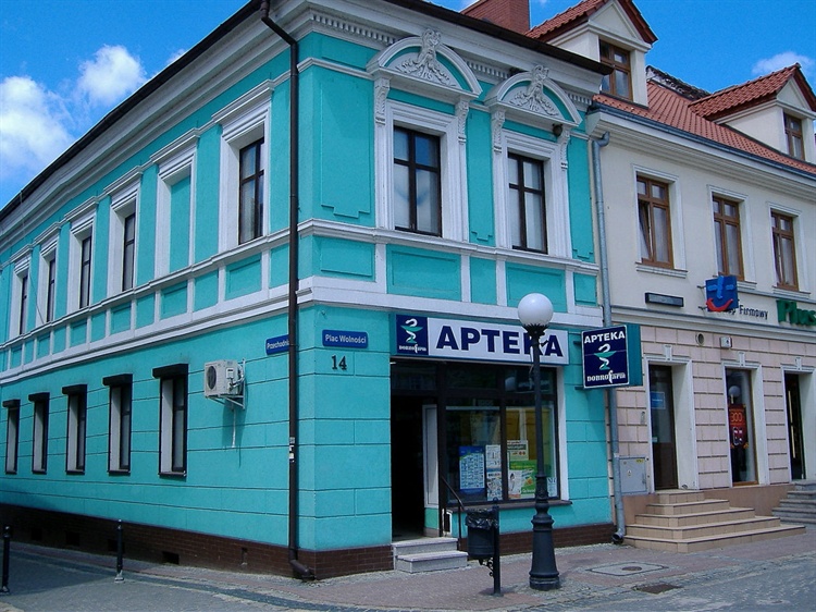 Jedną z najciekawszych kamienic Starego Miasta w Koninie jest dom przy Placu Wolności oznaczony numerem 14. Jest to późnoklasycystyczna kamienica o dwóch osiach od strony placu oraz długiej elewacji bocznej będącej konsekwencją kształtu działki, na której ją zbudowano około połowy XIX wieku. Swoją nazwę zawdzięcza maszkaronom umieszczonym w stiukowych obramowaniach otworów okiennych pierwszego piętra w elewacji frontowej. Od początku XX wieku działa tu nieprzerwanie apteka, przed wojną nosząca nazwę "Pod Orłem".