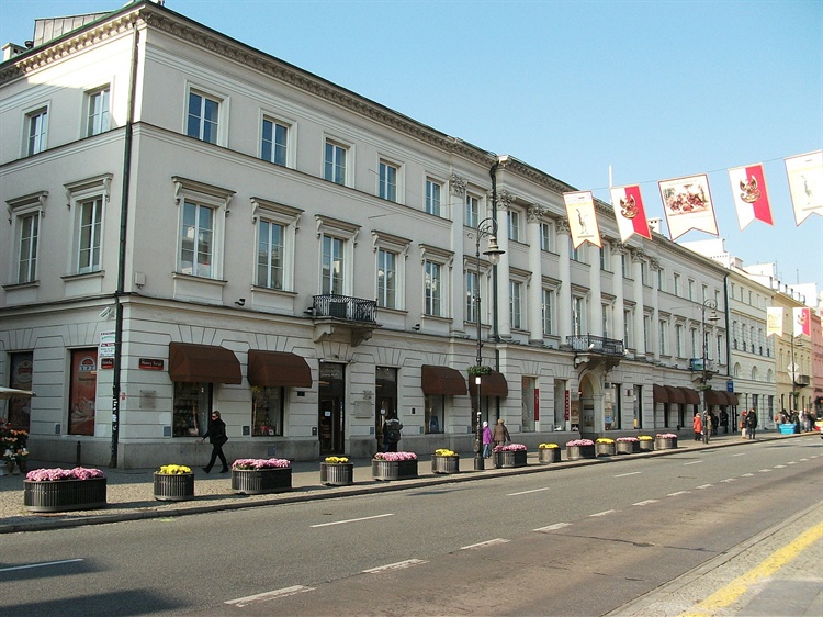 Wcześniej, w XVII w. na terenie tym stały budynki należące do klasztoru Szarytek, później, w XVIII w. dwór wojewodziny malborskiej Konstancji z Dłuszków Denhoffowej, nazywany Dworem Wareckim. Drewniany dwór nabył w 1762 r. nadworny pisarz Józef Pułaski. Na zapleczu dworu znajdował się ogród. W XIX w. mieszkał tutaj profesor Uniwersytetu Warszawskiego Wacław Ritschel, członek Komisji Drogi Żelaznej Warszawsko-Wiedeńskiej. W okresie międzywojennym funkcjonowały w kamienicy różne firmy handlowe i gastronomiczne, m.in. restauracja "Kresy", kawiarnia "Napoleonka" i od 1935 r. sklep firmowy Fabryki Cukierniczej E. Wedel.