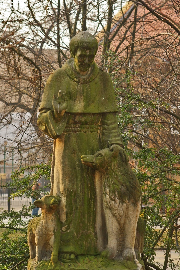 Franciszek z Asyżu był świętym Kościoła katolickiego i założycielem zakonu franciszkanów. Legnicka figura świętego Franciszka z Asyżu znajduje się na skwerze Franciszka Pałki, w pobliżu Akademii Rycerskiej i Klasztoru Franciszkanów. Postać świętego Franciszka stoi na kwadratowym postumencie. Przy figurze świętego z lewej strony mieści się postać wilka, a z prawej strony owieczka. Kamienna figura pochodzi z 1996 roku.