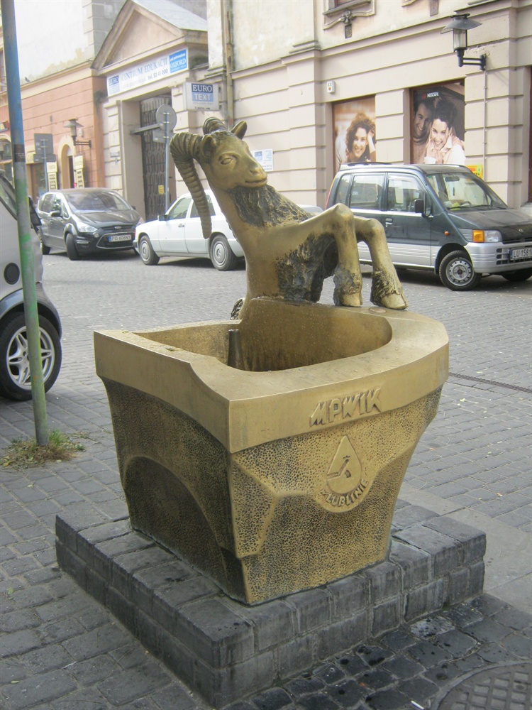 Autorem rzeźby koziołka jest Leszek Rymczuk. Został on wykonany z brązu. Na misie, o który opiera się koziołek, znajduje się przycisk, a po jego naciśnięciu ze zdroju tryska woda pochodząca z wodociągów, która nadaje się do picia. Lublinianie mówią, że pogłaskanie zwierzaka po rogu przynosi szczęście.