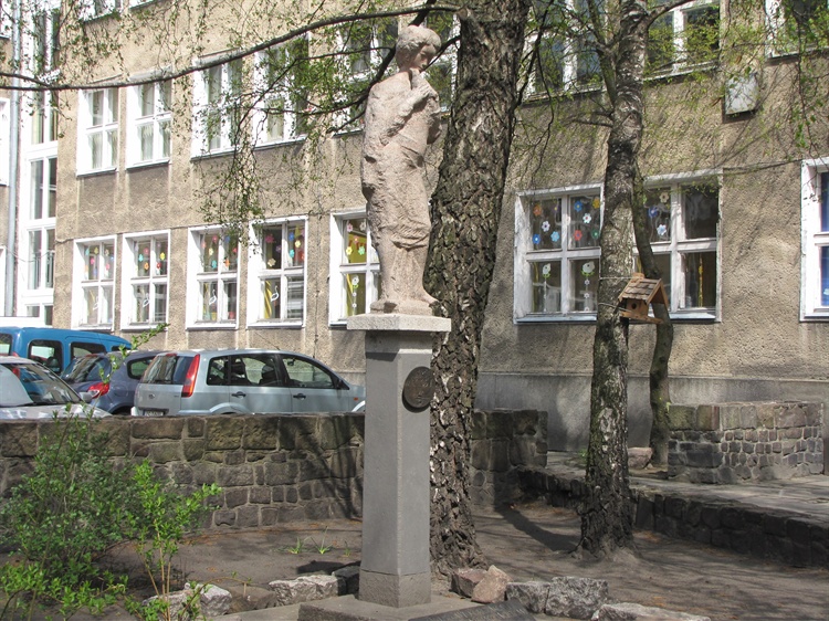 Pomnik króla Maciusia I stoi przy ul. Obrońców Stalingradu, tuż przy SP nr 54. Jest to pomnik wolnostojący, przedstawiający postać chłopca ustawionego na wysokim, betonowym cokole, na którym umieszczone są dwie tabliczki - jedna z napisem: "Król Maciuś I", druga: "Januszowi Korczakowi, Wychowawcy i Przyjacielowi Młodzieży 1961". Autorem projektu i jego wykonawcą był szczeciński artysta Mieczysław Welter. Pomnik odsłonięto w Dzień Dziecka - 1 czerwca 1961 roku, fundatorem był Wydział Kultury WRN.