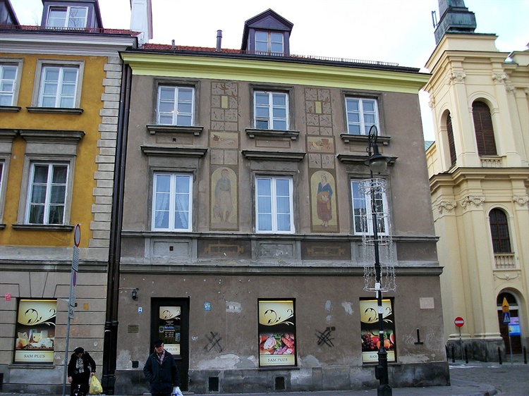 Na narożniku ulic Freta i Franciszkańskiej na warszawskim Nowym Mieście prawie do końca XVIII wieku stał drewniany dom należący do Węgrzynowicza. Pierwsza murowana kamienica stanęła na tej działce (dziś noszącej numer 55) po roku 1784 r. Był to dwupiętrowy budynek o trzech osiach od strony ulicy Freta. Nie znany jest wystrój kamienicy z okresu jej powstania. W końcu XIX wieku podwyższono budynek do wysokości pięciu kondygnacji. W czasie walk powstańczych w 1944 r. legła w gruzach. Pozostałości rozebrano, a samą kamienicę zrekonstruowano w 1955 r. powracając do trzykondygnacyjnej wersji. Fasadzie nadano nowy wygląd z polichromiami przedstawiającymi różne postacie oraz martwe natury.