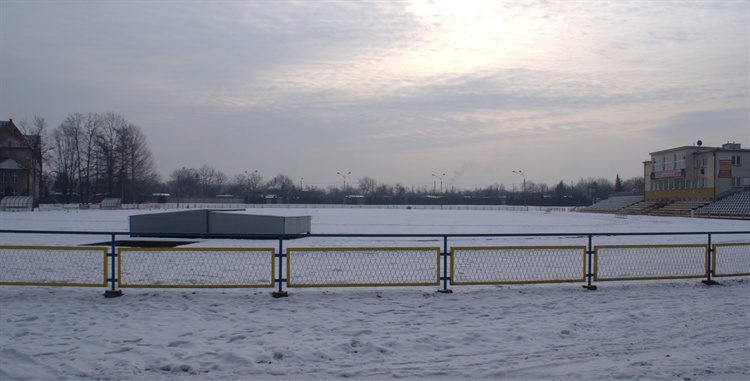 Pochód kierowano w stronę stadionu miejskiego. Tutaj miał nastąpić postój na noc. Kolumny wprowadzono na boisko, zmarznięci więźniowie układając się do odpoczynku zajęli suche, drewniane ławki na sektorach. W tym momencie, fanatyczni SS-mani zaczęli ich zganiać na murawę stadionu strzelając z broni palnej i bijąc kolbami karabinów co wywołało panikę. Tak zdarzenie opisze jeden z uczestników: „…Wchodzimy do Pszczyny. Prowadzą nas przez miasto bocznymi ulicami... Wprowadzają nas na duży stadion sportowy z krytymi trybunami. Dla naszych konwojentów wymarzone to miejsce. Stadion był ogrodzony, a tym samym tylko garstka SS-manów pozostała na straży. Na boisku stadionu był głęboki topniejący śnieg. Jedynie na trybunie były suche ławki, ale te do ostatniego miejsca zajęli już koledzy, którzy wcześniej przyszli na stadion. Dopóki więźniowie zajmowali trybunę, nie przeszkadzali temu SS-mani, z chwilą jednak, gdy już trybuny były pełne, podeszli do góry i zaczęli wszystkich spędzać w dół, bijąc niemiłosiernie kolbami i laskami. Działy się wówczas dantejskie sceny. Więźniowie, siedzący w przednich rzędach, nie mogli tak szybko opuścić trybuny ze względu na wysokie ogrodzenie, więc powstał na dole straszny tłok, w którym wielu więźniów bardzo się pokaleczyło, a byli i tacy, którym połamano ręce i nogi. Wszyscy musieli odpoczywać na mokrym śniegu. Nie podano nam ani kropli wody…”