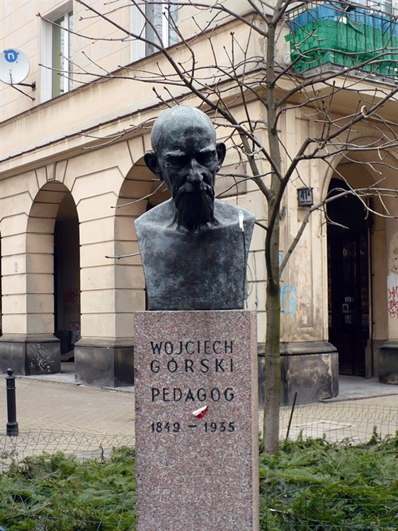 Zarówno pomnik jak i ulica, przy której stoi, upamiętniają Wojciecha Górskiego, wybitnego warszawskiego pedagoga, założyciela gimnazjum mieszczącego się dawniej w budynku pod numerem 2. Popiersie autorstwa Władysława Szyndlera wykonane zostało w 1937 roku. Początkowo stało w holu gimnazjum imienia W. Górskiego. Po zburzeniu budynku podczas powstania warszawskiego, przeniesiono je do szkoły przy ul. Smolnej. W 1957 r. w rocznicę 80-lecia nieistniejącego już gimnazjum, popiersie stanęło na rogu ulic Tuwima i Górskiego, gdzie stoi do dziś.