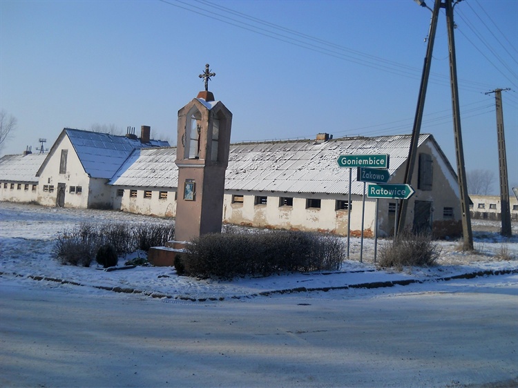W Koronowie na rozstaju dróg, przy drogowskazie znajduje się murowana kapliczka. Drogowskaz wskazuje drogi do trzech miejscowości: Goniembic, Ratowic i Żakowa, skąd dalej dociera się do Górki Duchownej. Rozdroże to jest świadkiem przemieszczania się wielu pielgrzymek, udających się do Sanktuarium Maryjnego we wspomnianej Górce Duchownej.
