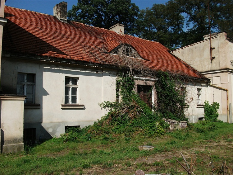 Parterowy budynek nakrywał stromy dach kryty dachówką z jednym oknem powiekowym mieszczącym się nad gankiem z wejściem głównym. Po kasacie zakonu przez władze pruskie majątek ziemski sprzedano prywatnym właścicielom. Z ich inicjatywy w drugiej ćwierci XIX wieku stary i niepozorny dworek został rozbudowany. Po bokach parterowej budowli dodano dwie piętrowe przybudówki.