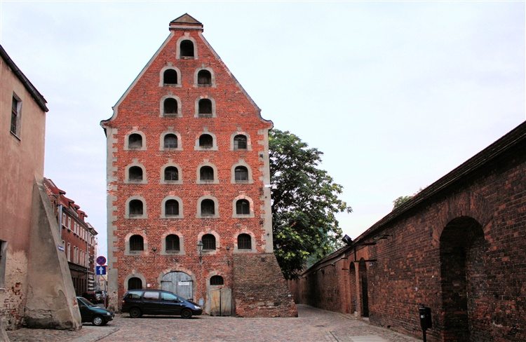 Spichlerz przy ulicy Piekary należy do największych i najciekawszych barokowych budowli tego typu w Polsce. Zbudowany został w 1 poł. XVII wieku na miejscu starszego - gotyckiego. Jego charakterystyczna, wielokondygnacyjna fasada jest łatwa do rozpoznania, ponieważ liczne otwory okienne obramowane są opaskami przypominającymi worki ze zbożem.