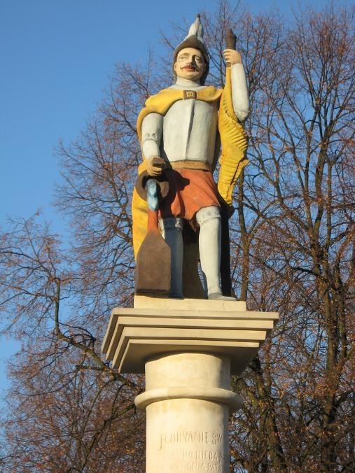 Figura św. Floriana, znajdująca się przy ćmielowskim rynku, stanęła tu w 1704 roku z fundacji miejscowych obywateli - małżeństwa Gajewskich. Posadowiona jest na wysokiej kolumnie z inskrypcją: "Floryanie św. z wojska do nieba przyjęty od ognia, patronie, miej to miasto w obronie", a pod spodem widnieją nazwisko fundatorów, data i informacja o tym, że figura została odnowiona przez Bartłomieja i Małgorzatę Myśliwskich w 1906 roku. Najnowsza renowacja przeprowadzona została w 2011 roku.
