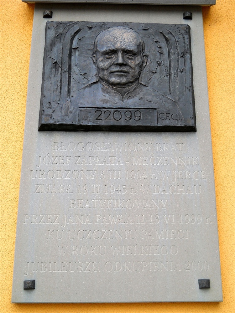 Józef Zapłata był duchownym katolickim ze Zgromadzenia Braci Serca Jezusowego. Urodził się 5 marca 1904 roku w Jerce. Już w październiku 1939 roku został aresztowany przez gestapo. W obozach spędził pięć lat. Od 8 grudnia 1940 przebywał w obozie koncentracyjnym w Dachau, gdzie zmarł 19 lutego 1945 roku, tuż przed jego wyzwoleniem. Został beatyfikowany dnia 13 czerwca 1999 roku w Warszawie przez papieża Jana Pawła II w grupie 108 polskich męczenników.