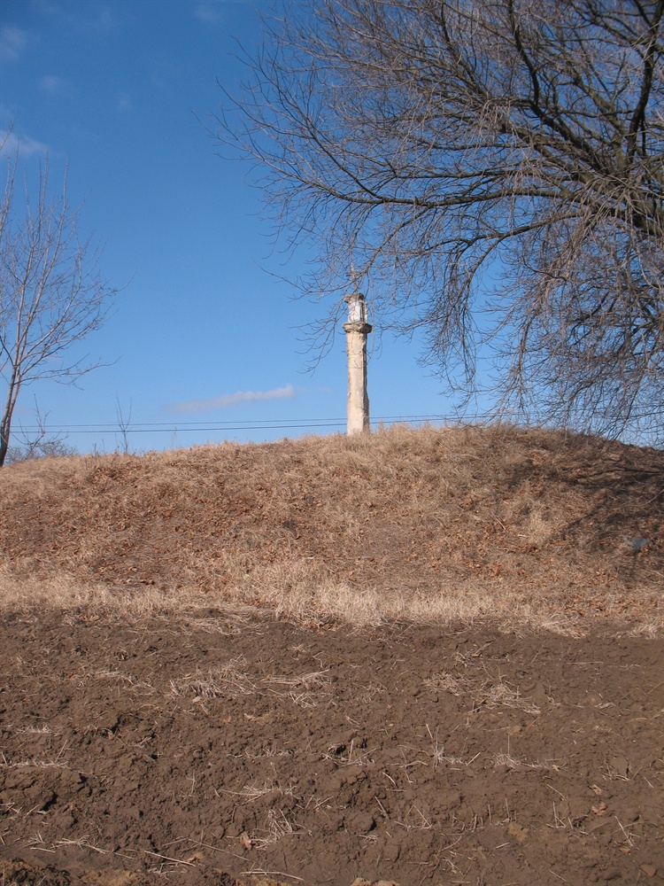 Wieńcząca kurhan kamienna kolumna "Boża Męka" pochodzi z XVII wieku. Kolumna ta to prawdopodobnie latarnia umarłych mieszcząca się pierwotnie przy cmentarzu, a następnie przeniesiona na wzniesienie. Według innej historii jest to "słup morowy" postawiony z powodu panującej w mieście zarazy przez mieszkańców, którym udało się przeżyć, zaś kurhan to zbiorowa mogiła jej ofiar.