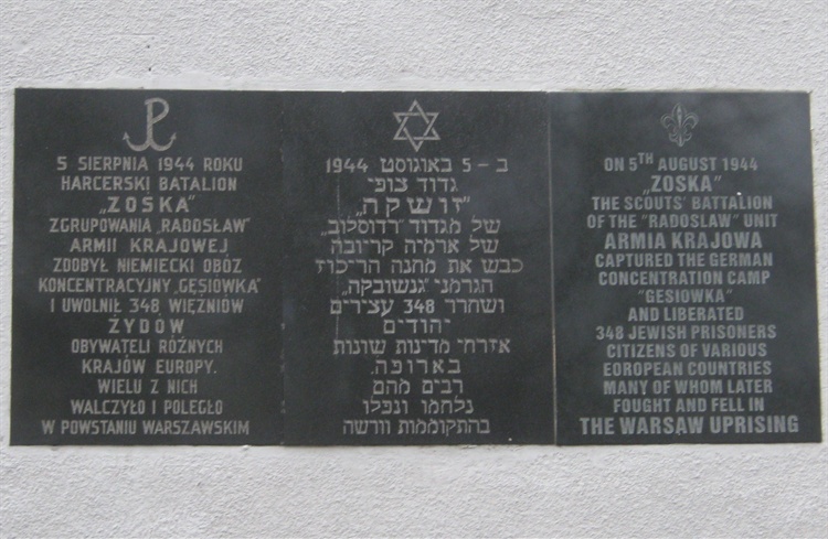 W chwili wybuch powstania 1 sierpnia 1944 roku na terenie obozu KL Warschau, pozostało 384 więźniów, którzy mieli być wykorzystani do likwidacji obozu. W dniu 5 sierpnia 1944 roku zostali wyzwoleni powstańców z batalionu „Zośka” dowodzonych przez Ryszarda Białousa „Jerzego”. Fakt ten upamiętnia tablica pamiątkowa umieszczona na fasadzie budynku przy ulicy Anielewicza 34.