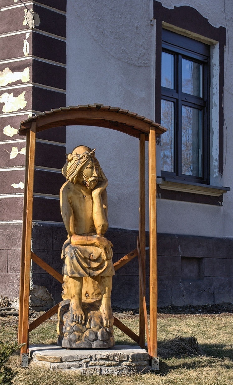 Na posesji probostwa parafii św. Marcina w Międzyrzeczu Górnym, znajduje się niecodzienna drewniana kapliczka z rzeźbą Chrystusa Frasobliwego. Autor przedstawił, stylizowanego na współczesnego mieszkańca Międzyrzecza, rozmyślającego Jezusa Chrystusa, siedzącego na pniu drzewa, z głową opartą na dłoni i spoglądającego na otaczający go świat. Korona cierniowa na głowie, na ciele ślady po uderzeniach biczem obrazują Mękę Pańską. Patrząc na samotną figurę odnosi się widoczne na zmienionej bólem twarzy wrażenie zadumania. Ta zafrasowana cierpiąca twarz namawia do przemyśleń nad sobą, nad własnymi słabościami i samotnością.