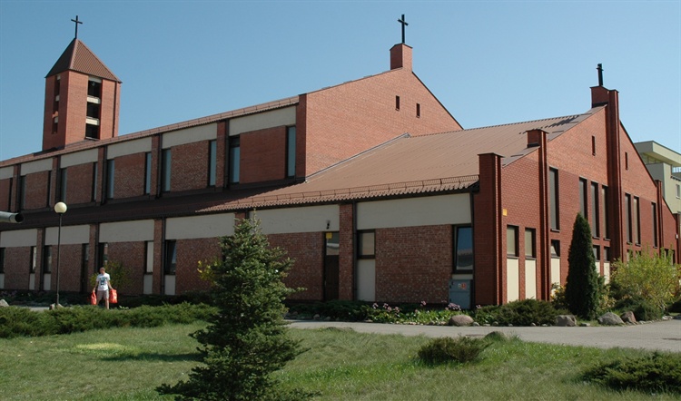 Kościół przy parafii Matki Boskiej Królowej Polski położony jest przy ulicy Mariackiej. Jego budowę rozpoczęto w 1995 roku i trwała ona rok, znaczniej więcej czasu zajęły jego prace wykończeniowe. Kościół jest przykładem nowoczesnej architektury sakralnej. Wnętrze konsekwentnie utrzymane jest w tonacji czerwonej cegły i drewna. Z zewnątrz również wykończony jest w podobny sposób. Na szczególną uwagę zasługuje drewniany ołtarz z obrazem Matki Boskiej Królowej Polski w centralnym miejscu. Obraz jest autorstwa Zdzisława Kruszyńskiego - mławskiego artysty malarza; poświęcony został 11 czerwca 1998 roku, w święto Bożego Ciała.