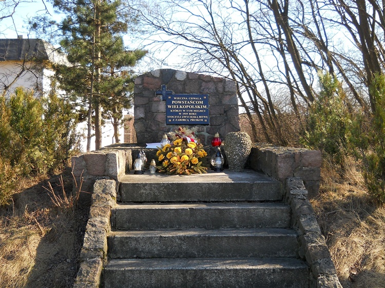 W 1919 roku w czasie Powstania Wielkopolskiego w Osiecznej doszło do bitwy z pruskim zaborcą. Bitwa ta zakończyła się zwycięstwem powstańców. Właśnie temu wydarzeniu poświęcony jest pomnik z tablicą pamiątkowa informującą o tym pamiętnym wydarzeniu. Napis na tablicy brzmi: "Wieczna chwała Powstańcom Wielkopolskim, którzy w tym miejscu w 1919 roku stoczyli zwycięską bitwę z zaborcą pruskim". Pomnik znajduje się po prawej stronie drogi jadąc od strony Leszna, tuż przy słynnych wiatrakach.