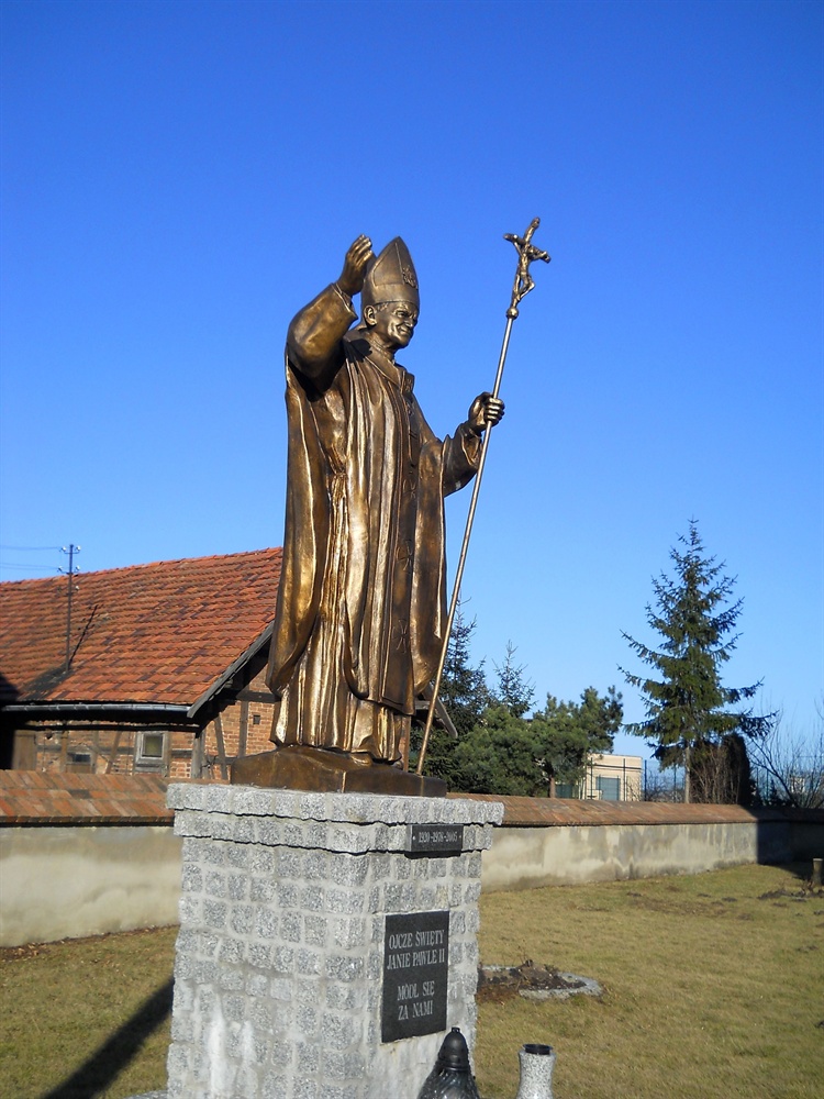 Pomnik Jan Pawła II znajduje się przy kościele pw. Wszystkich Świętych. Jego fundatorem jest ksiądz proboszcz Ryszard Kuchta. Poświęcenie pomnika miało miejsce 16 października 2008 roku, w dzień trzydziestej rocznicy wyboru Karola Wojtyły na papieża. Monument przedstawia Ojca Świętego trzymającego pastorał. Na postumencie umieszczona jest tabliczka, na której widnieją trzy daty: 1920 - narodziny Karola Wojtyły, 1978 - wybór na papieża, 2005 - śmierć Jana Pawła II. Pod nią znajduje się druga tabliczka z napisem: "Ojcze Święty Janie Pawle II, Módl się za nami".