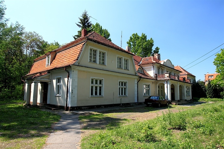 Po obydwu stronach głównej części budynku dostrzec można dwa ryzality pokryte charakterystycznym, łamanym dachem. Od frontu znajduje się ganek z kilkoma filarami podtrzymującymi balkon na pierwszym piętrze.