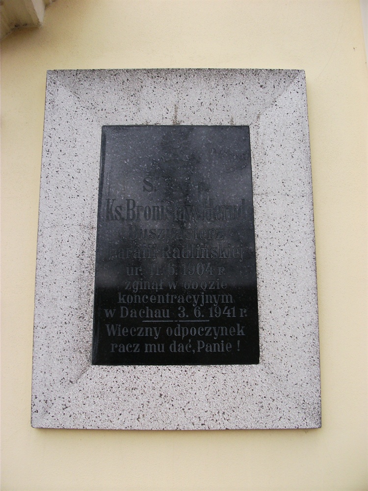 Ksiądz Bronisław Herud (1904-1942) w okresie przedwojennym był proboszczem w parafii św. Walentego w Radlinie. Był jednym z piętnaściorga dzieci rolnika spod Pleszewa. Ukończył Seminarium Duchowne w Gnieźnie. W czasie hitlerowskiej okupacji został aresztowany i umieszczony w obozie koncentracyjnym w Dachau. Tutaj zginął zamęczony 3 czerwca 1942 r. Pamięć o jego osobie czci tablica wmurowana w ścianę radlińskiego kościoła.
