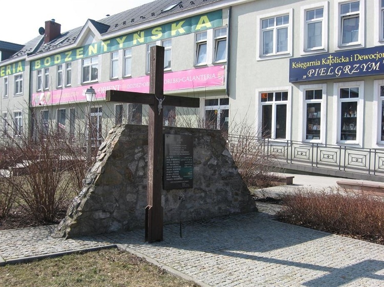 Na Placu Świętego Wojciecha przy kościele pod tym samym wezwaniem zachował się fragment starego muru. W tym miejscu w 1943 roku Niemcy rozstrzelali publicznie zakładników – żołnierzy Armii Krajowej. W dniu 22 lipca 1969 roku na murze została umieszczona i odsłonięta tablica upamiętniająca to wydarzenie, obok stoi duży drewniany krzyż. Tablica zawiera stosowną treść: "18 listopada 1943 r. zginęli z rąk hitlerowskich zbrodniarzy bojownicy Polski Podziemnej. /niżej 10 nazwisk rozstrzelanych/ Cześć ich nieśmiertelnej pamięci. Rodziny ZBOWiD-P.T.T.K. Kielce 22 lipca 1969".