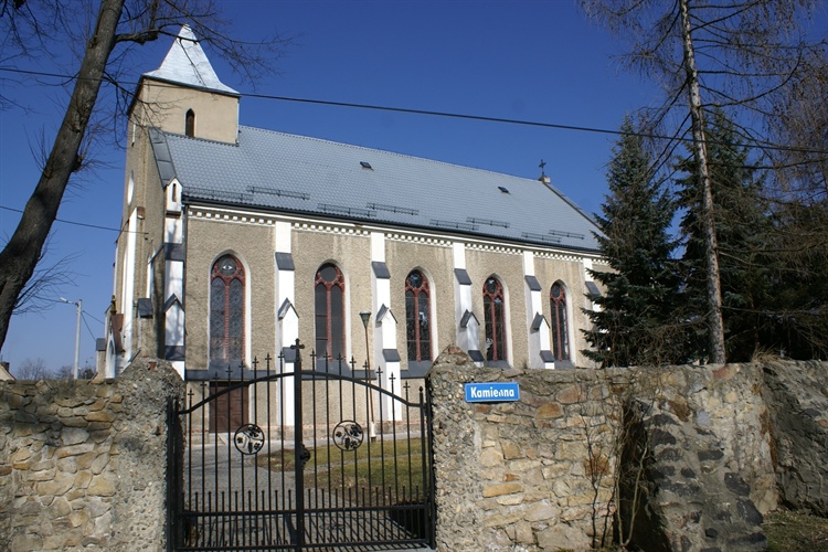 Neogotycki murowany kościół w obecnej formie istnieje od 1892 r. Zniszczony podczas II wojny światowej, w 1947 r. został odbudowany.
