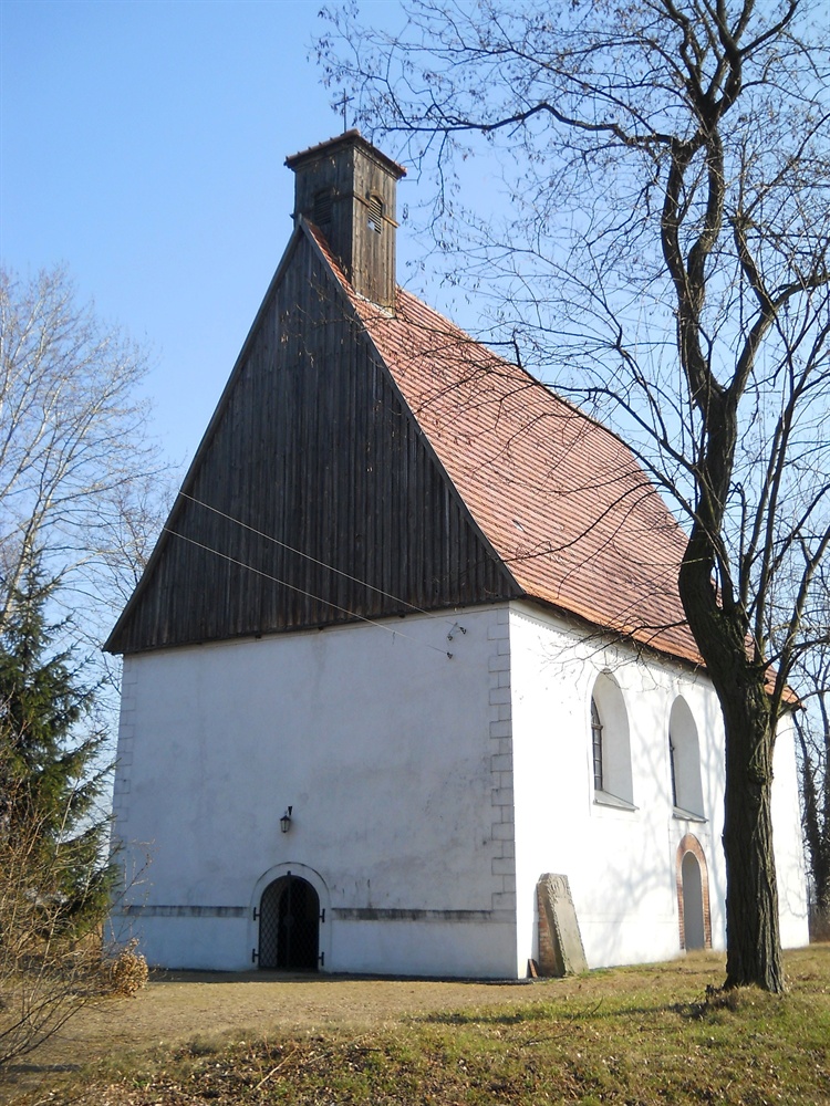 Budynek kościelny znajduje się na terenie dawnego cmentarza. Jest budowlą postawioną na planie prostokąta, z dwuspadowym dachem. Ściany zewnętrzne są bielone. Po obu stronach mieszczą się płyty nagrobne. Jedna pochodzi z XVIII wieku, druga jest nieczytelna. Zachowały się drewniane empory oraz posadzka z XVIII wieku. Wewnątrz warto zwrócić uwagę na piękną drewnianą chrzcielnicę oraz stare drewniane ławki.