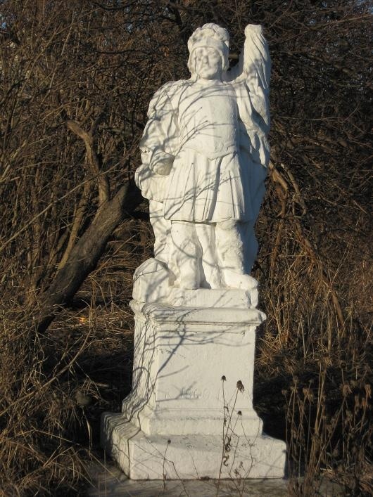 Na terenie Bidzin zachowało się kilka małych obiektów zabytkowych z kamienia, najczęściej pochodzących z warsztatów janikowskich. Kamienna figura św. Floriana jest jedną z nich, stoi przy drodze krajowej nr 74. Kamienna rzeźba ustawiona jest na niewielkim cokole w typowym układzie kompozycyjnym dla tego świętego i pochodzi z początku XIX wieku. Całość wybielona jest wapnem i wymaga konserwacji.