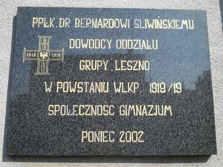 Na budynku Gimnazjum im. ppłk. dr. Bernarda Śliwińskiego w Poniecu znajduje się tablica pamiątkowa poświęcona jego pamięci. Tablicę ufundowała społeczność gimnazjum w 2002 roku.