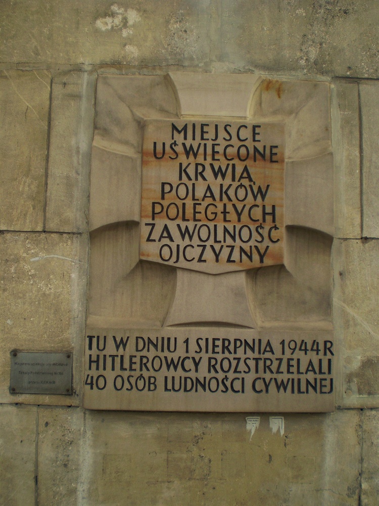 Jest to monolit z piaskowca znajdujący się na ścianie budynku przy ulicy Marszałkowskiej 136. Upamiętnia wydarzenia z dnia 1 sierpnia, kiedy to Niemcy rozstrzelali w tym miejscu 40 cywilnych osób.