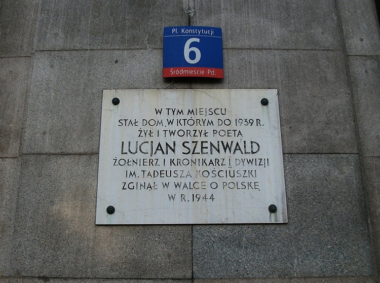 W Warszawie przy Placu Konstytucji 6 znajduje się tablica upamiętniająca dom Szenwalda. Znajduje się na niej następujący napis: "W tym miejscu stał dom, w którym do 1939 r. żył i tworzył poeta Lucjan Szenwald, żołnierz i kronikarz I Dywizji im. Tadeusza Kościuszki. Zginął w walce o Polskę w r. 1944".