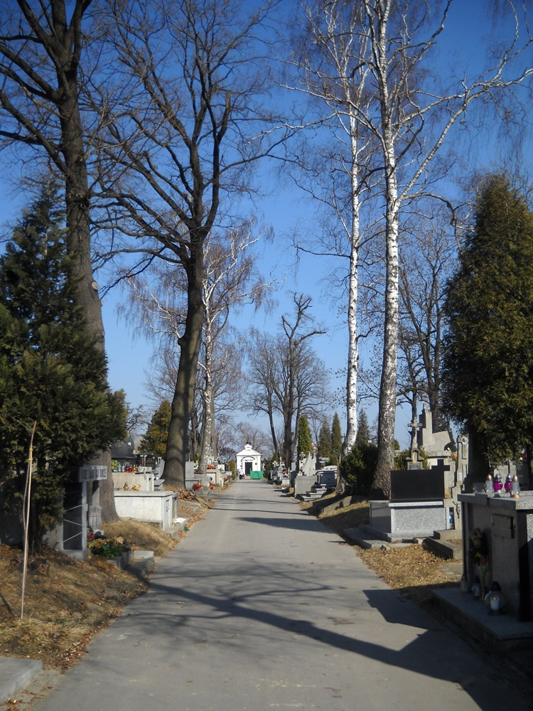 Za głównym wejściem znajdują się kwatery zbiorowe powstańców styczniowych, żołnierzy z I wojny światowej oraz żołnierzy niemieckich. Centralną część nekropolii zajmuje zespół grobowców. Uwagę zwraca grobowiec inż. Andrzeja Kędziora - posła na Sejm we Lwowie, Ministra Robót Publicznych oraz posła do Sejmu i Senatu RP. Nieopodal mieści się kaplica cmentarna z 1889 roku wzniesiona przez dwie rodziny mieleckie, Piechocińskich i Ratusińskich. W sąsiedztwie mogił żołnierzy niemieckich znajduje się figura Chrystusa Frasobliwego w stylu ludowego baroku z drugiej połowy XIX wieku. Całość cmentarza otoczona jest murem, a nastrój spokoju i powagi podkreślają liczne stare drzewa pochylające się nad grobami.