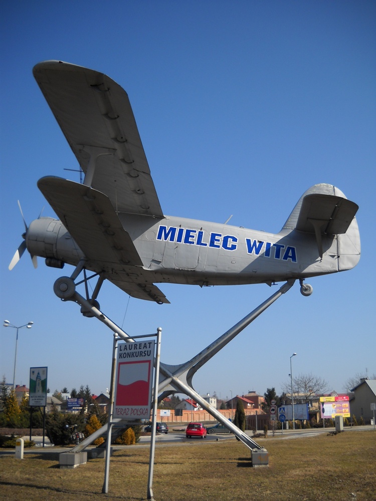 Gdy wjeżdżamy do Mielca od strony Krakowa, zaraz za mostem na Wisłoce zauważamy samolot na wysokim rusztowaniu. To druga wizytówka Mielca. Samolot wielozadaniowy AN-2 wyprodukowany został w 1974 roku właśnie w mieleckich zakładach lotniczych.