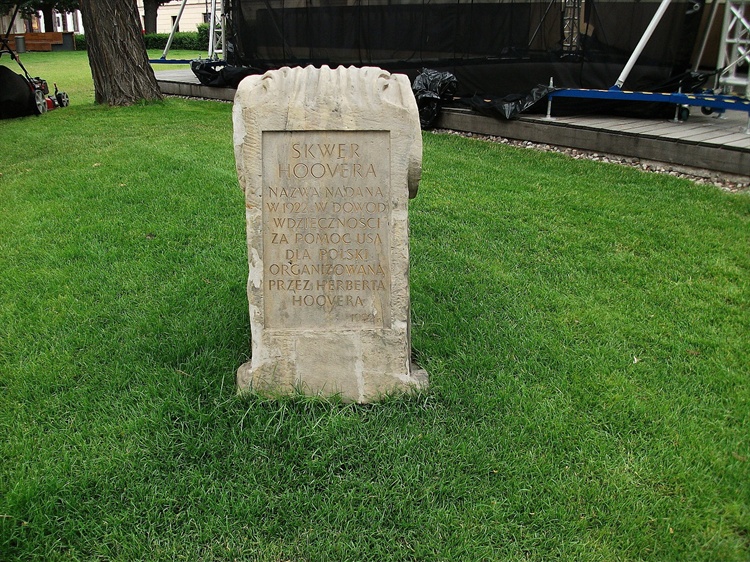 31 prezydent USA Herbert Hoover (1874-1964) był niezwykle zasłużoną dla Polski postacią. Dzięki niemu, gdy był jeszcze przewodniczącym Amerykańskiej Administracji Pomocy, dostarczano do polski pomoc dla polskich dzieci. Jego wysiłki na rzecz poprawy zdrowia polskiego społeczeństwa doceniły uczelnie. W 1921 r. Uniwersytet Jagielloński nadał mu tytuł doktora medycyny, a Uniwersytety w Warszawie i Lwowie doktoraty honoris causa. Prócz tego nadano mu najpierw honorowe obywatelstwo Warszawy i Lwowa, w w 1922 r. został Honorowym Obywatelem Rzeczypospolitej. Od 1922 r. jego imię nosi skwer przy Krakowskim Przedmieściu.