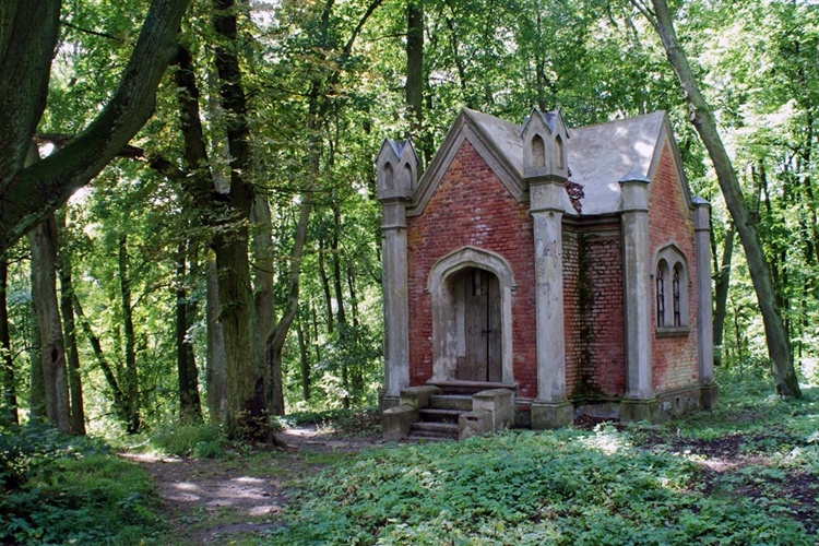 Kaplica została zbudowana w 1857 roku w przypałacowym parku. Stało się to po śmierci dwóch synów właścicieli majątku Hermana i Augusty von Redecker. Jeden z nich zmarł w wieku dwóch lat, zaś drugi podczas manewrów wojskowych w wieku 18 lat.