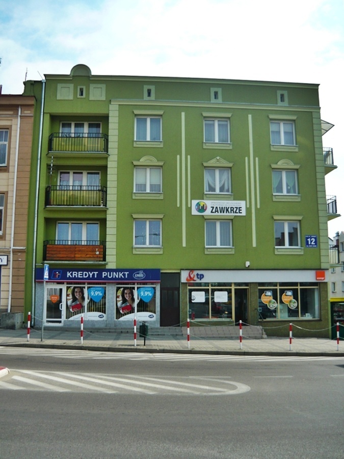 Pierwsza kamienica, która stała w tym miejscu, powstała na przełomie XIX i XX wieku. Stanowiła ozdobę mławskiego rynku. Była dwupiętrowa, z ładnymi balkonami i ozdobną facjatą. Niestety II wojna światowa sprawiła, że nie możemy jej już dziś oglądać. Budynek został doszczętnie zniszczony. W pustym miejscu pobudowano blok mieszkalny. Jest on dość funkcjonalny, ale znacznie odbiega architektonicznie od zabudowy wschodniej pierzei rynku.