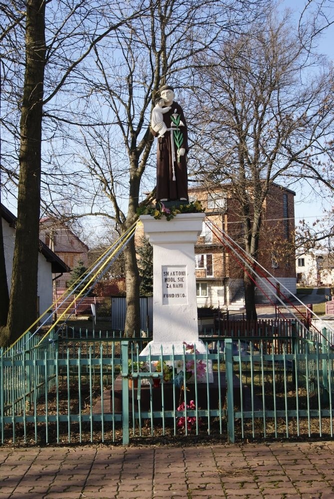 Figura św. Antoniego Padewskiego stoi przy głównym wejściu do klasztoru. Św. Antoniegi Padewski jest patronem tutejszej świątyni oraz parafii klasztornej. Odbywający się 13 czerwca odpust jest właśnie dedykowany temu świętemu. W kościele znajduje się jego obraz olejny, malowany na płótnie, który został stworzony przez księdza profesora Józefa Kaczmarczyka z Uniwersytetu Jagiellońskiego w Krakowie w 1943 r. Według przekazów, obraz ten ocalał jako jedyny element wystroju wnętrza, podczas gdy w listopadzie 1944 r. świątynie wysadzili w powietrze Niemcy.