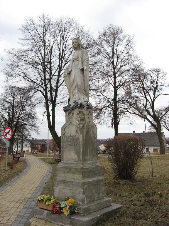 Na denkowskim rynku znajduje się figura Matki Bożej z 1921 roku. Z inskrypcji dowiadujemy się, że została ufundowana przez mieszkańców Denkowa - wtedy jeszcze była to samodzielna osada, dzisiaj dzielnica Ostrowca Świętokrzyskiego. Kamienna figura Matki Boskiej stoi na dość wysokim postumencie, na kuli oplecionej wężem, przygniatającej jego łeb. Jak większość takich przydrożnych figur, zapewne została wystawiona jako wotum dziękczynne.