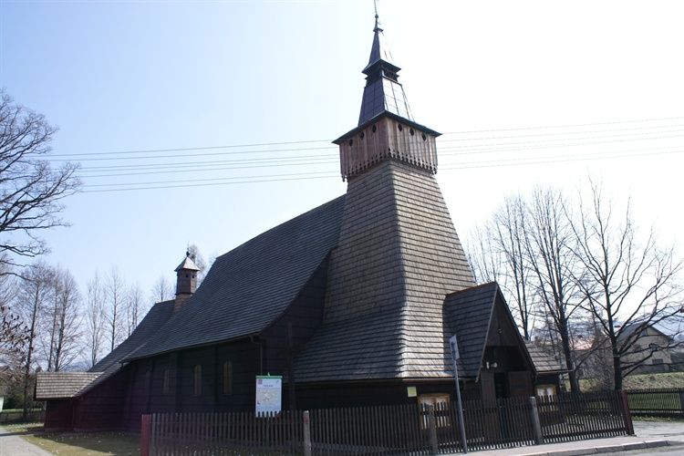 W 1542 r. w miejscu obecnego kościoła znajdowała się kapliczka. W latach 1666-67 do istniejącej kaplicy dobudowana została nawa oraz wieża, a w 1857 r. zakrystia i skarbiec. Rozbudowa świątyni miała miejsce również w latach 1893-96, kiedy to wydłużono nawę, wzniesiono nowy babiniec z wieżyczką oraz kaplicę św. Franciszka. W tym czasie wykonane zostały prace malarskie stropu i ścian przez Antoniego Stopka z Makowa Podhalańskiego. Renowacje ołtarzy i obrazów oraz malowanie ścian i stropu przeprowadzono w latach 1949-51.
