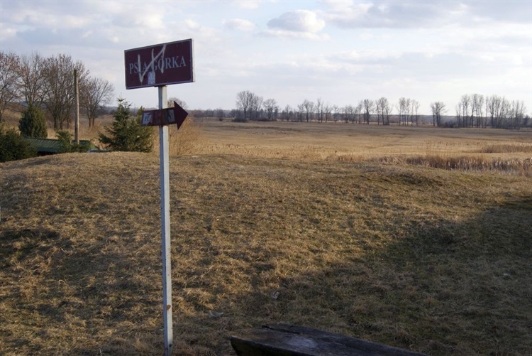 Znajdujący po prawej stronie drogi na grodzisko niewielki pagórek nosi nazwę Psiej Górki. Była ona miejscem, gdzie w 1389 r. zapadł wyrok w sprawie Gniewosza z Dalewic. Wszystko zaczęło się od głośnego obyczajowego skandalu, kiedy to owy Gniewosz, który był agentem na usługach Habsburgów, chcąc doprowadzić do upadku królewskiego małżeństwa rzucił publiczne oskarżenie wobec królowej Jadwigi, o to że miała by być niewierna swojemu mężowi czyli Władysławowi Jagielle. Królowa Jadwiga, chcąc udowodnić iż jest to nieprawda, oddała go pod sąd.