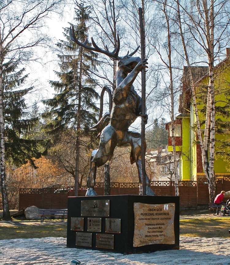 Pomnik Ducha Gór stoi na Skwerze Radiowej Trójki. Rzeźba Ducha została wykonana z brązu na wzór utrwalonej na rysunku postaci autorstwa niemieckiego kartografa Helwiga z 1561 roku.