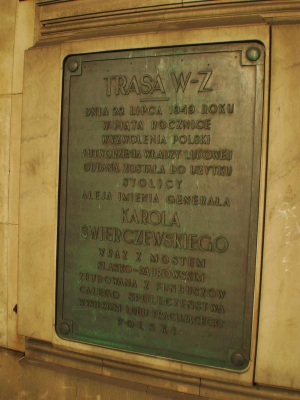 Budowę rozpoczęto 22 kwietnia 1947 r., zaś uroczyste otwarcie i przekazanie do użytku nastąpiło w dniu 22 lipca 1949. Początkowo otrzymała nazwę Bohaterów Starówki, ale z upływem lat o bohaterach Starówki zapomniano i trasę ochrzczono imieniem Karola Świerczewskiego. To miano przetrwało do zmiany ustroju, kiedy to nazwę przekształcono na Trasa W-Z.