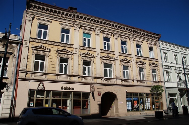 Kamienica została wzniesiona w roku 1870 dla Abrama Prussaka (posiadał on pierwszą tkalnię wełny w Łodzi). Swoją bryłą reprezentuje eklektyzm z elementami renesansowymi i barokowymi. Jest to budynek symetryczny, bogato zdobiony pilastrami i akroterionami. W latach 1873-1887 mieściła się w nim księgarnia Szlamy Mittlera. Kamienica znajduje się przy ul. Piotrkowskiej 5 i jest wpisana do rejestru zabytków.