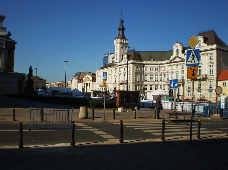 Plac pierwotnie nazwano Marywilskim, a od 1840 r. Teatralnym. Po jego północnej stronie stał Ratusz Miejski (dawny Pałac Jabłonowskich) oraz kościół i klasztor Kanoniczek. Około roku 1855 na placu ustawiono fontannę oraz latarnie gazowe. W ciągu dziewiątego dziesięciolecia XIX w. urządzono na nim dwa skwery. W latach 1861-63 i w roku 1905 był widownią krwawo tłumionych manifestacji.