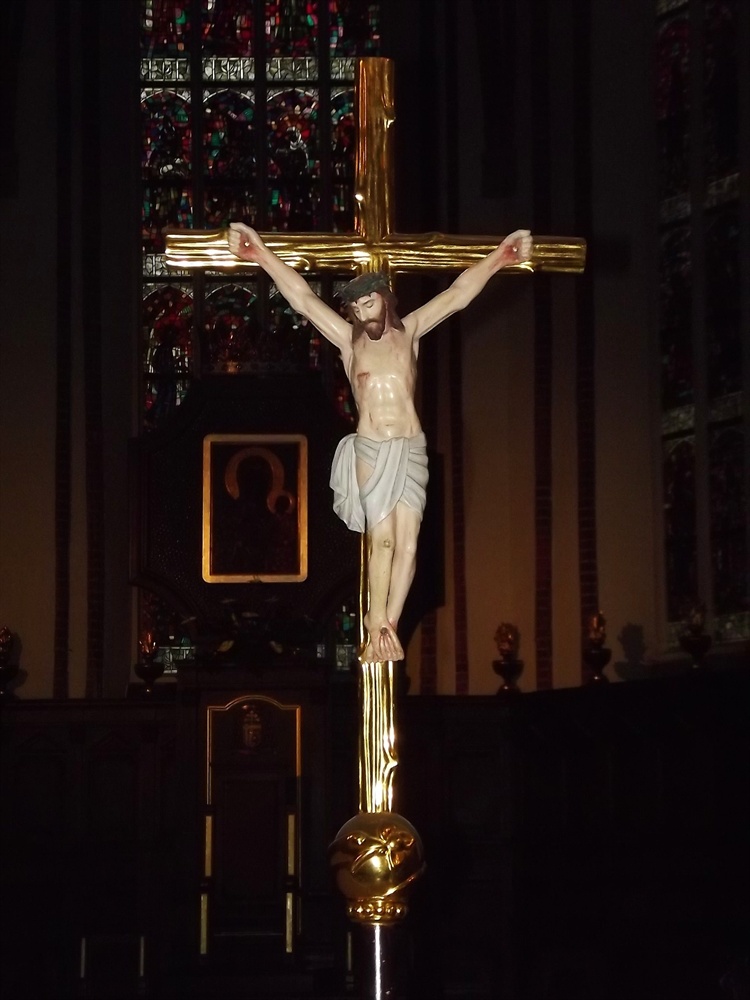 Znajduje się w specjalnej kaplicy usytuowanej na końcu lewej nawy katedry. Figura Chrystusa wyrzeźbiona jest w gruszkowym drewnie, ponadto obciągnięta płótnem i polichromowana. Mistrzowsko modelowany tors, z wielkim realizmem przedstawione nabrzmiałe żyły i napięte mięśnie rąk, wreszcie pełne wyrazu spokojne oblicze umęczonego Chrystusa, którego ekspresję potęgują prawdziwe włosy, pozwalają tę rzeźbę zaliczyć do najwybitniejszych dzieł późnogotyckiej plastyki na terenie Warszawy.