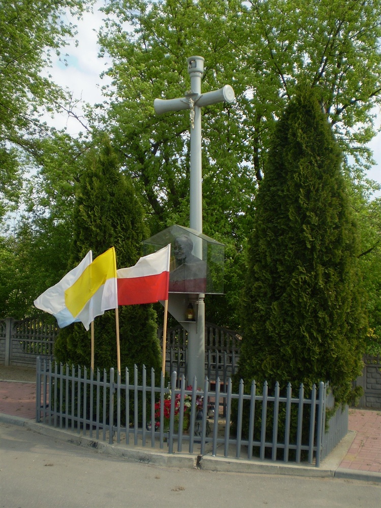 Kilka lat temu, po śmierci papieża Jana Pawła II mieszkańcy wsi ustawili na metalowej półce przy krzyżu popiersie Ojca Świętego.