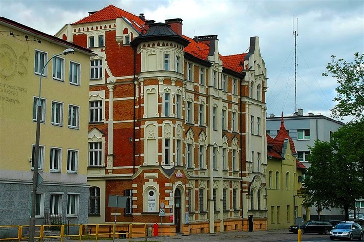 Budowla została wzniesiona w 1905 roku, mimo że od samego początku swego istnienia łączyła w sobie funkcje biurowe i mieszkalne, ze znaczną przewagą tych pierwszych, zewnętrznie ani trochę nie przypominała surowego pruskiego urzędu. Bardziej dopatrywać się w niej można wzorca dużej kamienicy czynszowej w konwencji stylu francuskiego. Jest to budynek czterokondygnacyjny, na rzucie prostokąta, podpiwniczony, wszystko przykrywa wielopołaciowy dach. Jednak niepowtarzalności temu obiektowi nadaje ceglana fasada z neogotyckim, tynkowanym detalem i wieloboczna wieża o kwadratowej podstawie.
