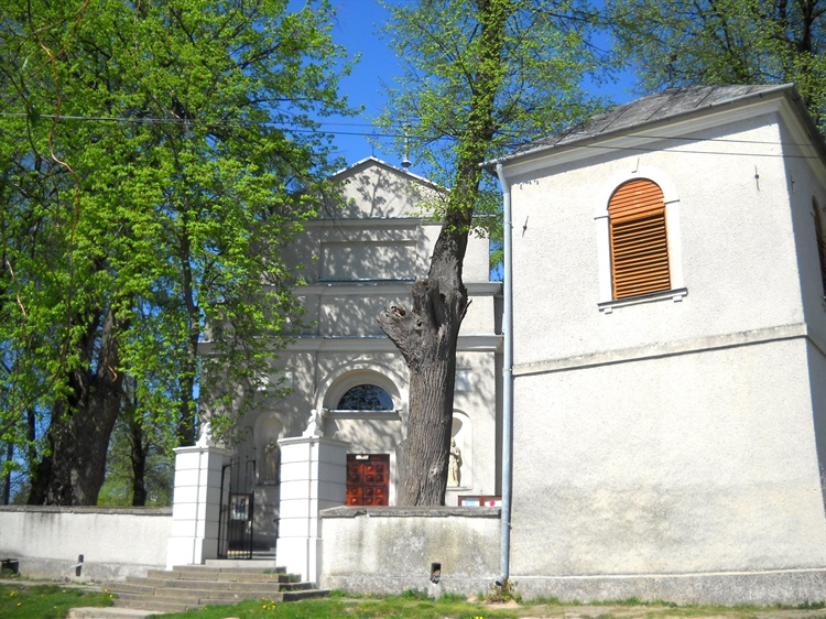 W latach 40-tych XVI wieku świątynia przeszła gruntowny remont.Obecny,murowany kościół został wzniesiony w roku 1835.Utrzymany jest w stylu późnoklasycystycznym i posiada "surową elegancję". Wyróżnia się również tym, że skierowany jest ołtarzem ku północy. W czasie II wojny światowej kościół został zdewastowany przez okupantów niemieckich, którzy urządzili w nim stajnię dla koni.