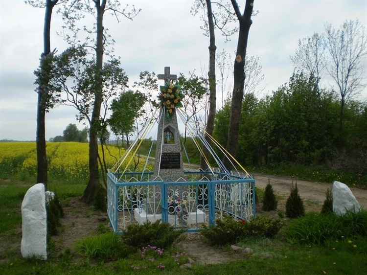Usytuowany jest na południowym skraju wsi, przy zakręcie drogi prowadzącej do Ciemniewka. Jest to granitowy krzyż w formie cmentarnego nagrobka, otoczony ozdobnym, żelaznym ogrodzeniem. Przy każdym jego rogu stoją – różnej wielkości – kamienie polne wybielone wapnem, między którymi rosną dwa gatunki życiodrzewu z pobliskiej szkółki. W cokole wykonana została mała wnęka, w której ustawiona jest figurka Matki Boskiej. Poniżej znajduje się tabliczka z napisem: „<<Niech zstąpi duch Twój i odnowi oblicze tej ziemi>> Jan Paweł II. Miesz. Nasierowa Dziur. 1981”.