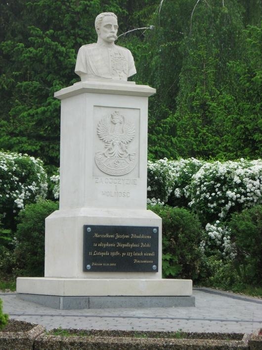 Na skwerze obok pałacu Wielopolskich znajduje się pomnik marszałka Józefa Piłsudskiego. Został odsłonięty w 144 rocznicę urodzin tego wielkiego Polaka - 5 grudnia 2011 roku. Na granitowej tablicy przytwierdzonej do cokołu widnieje stosowna treść: „Marszałkowi Józefowi Piłsudskiemu za odzyskanie niepodległości Polski w dniu 11 listopada 1918 roku po 123 latach niewoli - Pińczowianie”.