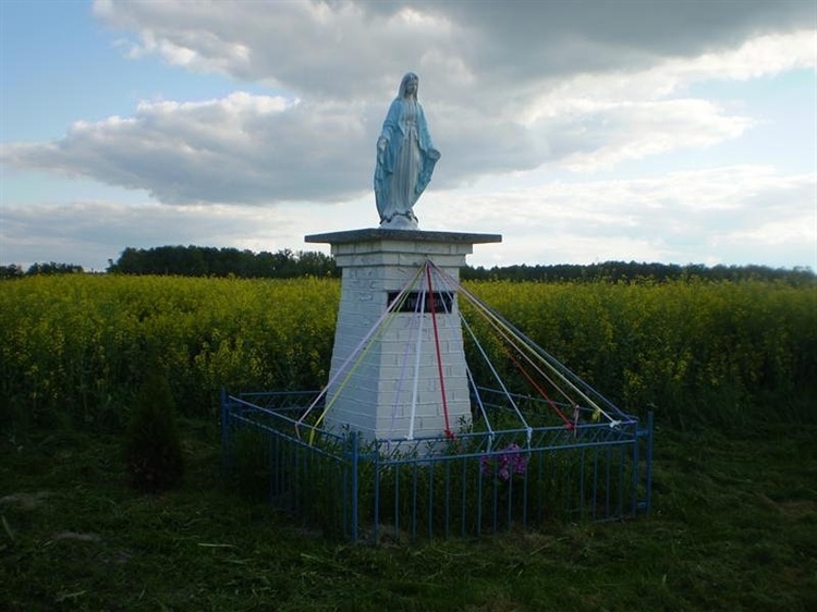 Znajduje się przy drodze ze Strzegocina do Gąsiorowa, w gminie Świercze. Jest to figurka Matki Boskiej wysokości ok. 1 metra, ustawiona na solidnym, wymurowanym z cegły cokole, którego zwieńczeniem jest kwadratowa, granitowa półka. Na postumencie tym umieszczona została tabliczka z napisem: „Pod Twoją Obronę”. Ogrodzenie wykonane zostało z żelaznych prętów, jakich używa się przy grodzeniu posesji siatką.