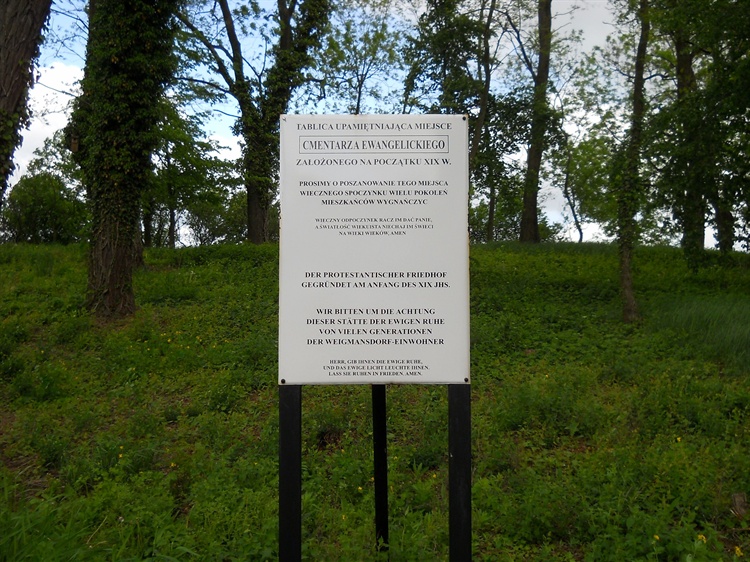 W miejscowości Wygnańczyce znajdował się cmentarz ewangelicki założony na początku XIX wieku. Z pewnością nikt nie zauważyłby tego miejsca, gdyby nie mieszkańcy wsi, którzy postawili tam tablicę informującą o jego istnieniu. Napis jest w języku polskim i niemieckim. Polska wersja brzmi: "Tablica upamiętniająca miejsce Cmentarza Ewangelickiego założonego na początku XIX w. Prosimy o poszanowanie tego miejsca wiecznego spoczynku wielu pokoleń mieszkańców Wygnańczyc". Dalej znajdują się słowa modlitwy za zmarłych. Chwała mieszkańcom wsi, którzy umieścili tablicę w tym miejscu. Nie ma tam bowiem śladów pozwalających zorientować się o dawnym przeznaczeniu tego terenu. Jedynie pod tablicą znajduje się kawałek nagrobka z napisem w języku niemieckim. Pozostały również słupki, które są pozostałością po starym ogrodzeniu nekropolii.
